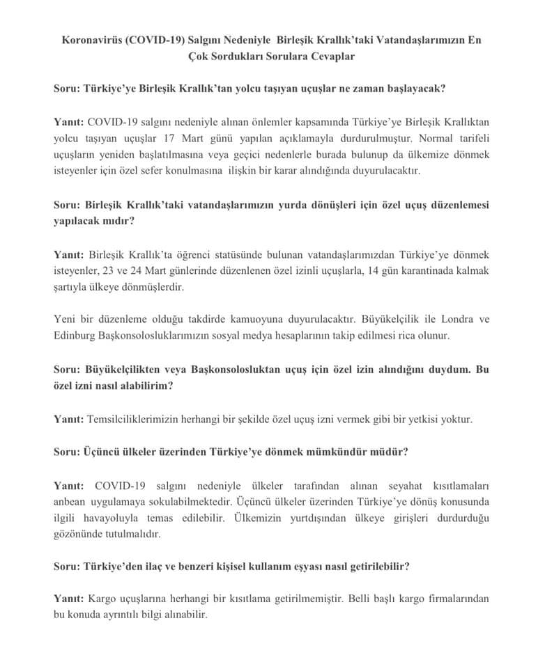 Soru: Birleşik Krallık’taki vatandaşlarımızın yurda dönüşleri için özel uçuş düzenlemesi yapılacak mıdır?