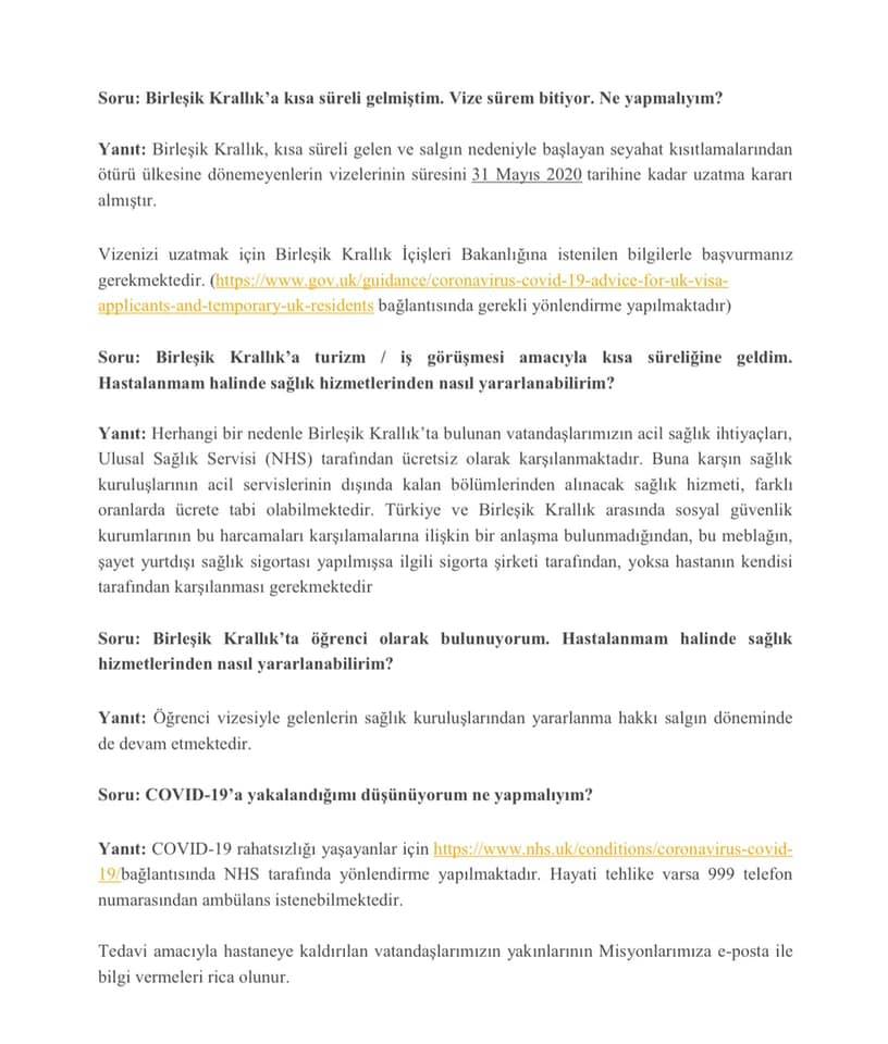 Yanıt: Birleşik Krallık, kısa süreli gelen ve salgın nedeniyle başlayan seyahat kısıtlamalarından ötürü ülkesine dönemeyenlerin vizelerinin süresini